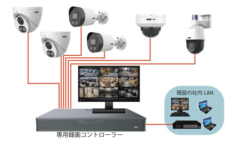 既設のLAN配線を利用し、今お使いのパソコンから自在に監視/録画を可能にします。